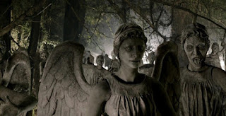 Funny story about this one, there has been a post on Facebook going around a couple of the groups that I follow. This person walked into a comic store and the lady at the cash register pointed to where the Doctor Who stuff was saying "The Doctor Who section is over there." Our Whovian asked "How did you know?" The employee of the comic store replied quite simply "You cringed at the angel statue in front." Yep, we do that. Us Whovians find random stone statues to be scary. Another story, this one absolutely true and I know that because it happened to me. A group of my friends and I were at the Winchester Mystery house for the Fright Walk this past October. Nathaniel and I wouldn't take our eyes off the stone statues in the front when we passed by them, they were the scariest thing through the entire walk. People jumping out at us, no problem. Guy with chainsaw threatening to lop off my legs, cake walk. Stone statues, "DON'T BLINK!"